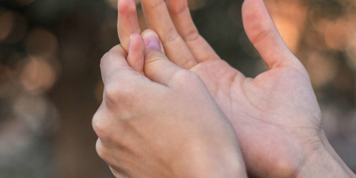 - Use el dedo índice y el pulgar para estirar la piel del dedo hacia la mano.